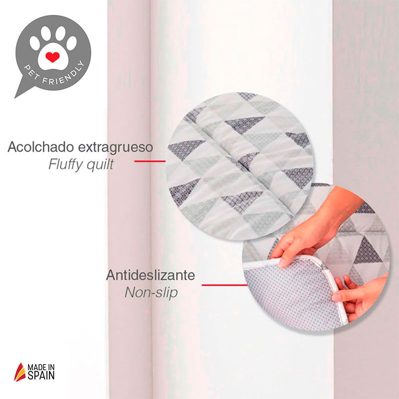El topper protector de sofás modelo BUDDY es la solución perfecta para mantener tu sofá protegido de los desgastes y pelos de tus mascotas manteniendo tu sofá impecable. Este topper se ajusta fácilmente a cualquier sofá e incluye en el reverso unos micro puntos de silicona antideslizante para mantenerlo fijo. También puedes utilizarlo como cama para tú mascota gracias a su acolchado extra grueso.