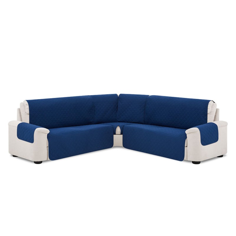 Cubre rinconera acolchada reversible Couch Cover. Perfecta para proteger un sofá esquinero. Con un tejido microfibra tacto melocotón, suave, esponjoso y muy agradable. La funda ofrece un resultado muy cómodo. Práctica y ajustable gracias a sus gomas elásticas que se fijan a la parte trasera y fácil de lavar. Disponible para dos tamaños de rinconeras.