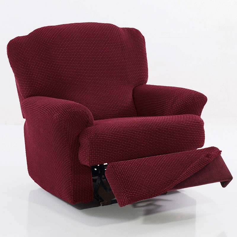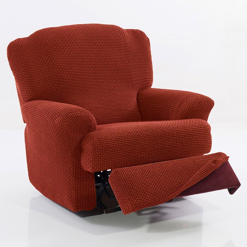 Funda de sillón relax súper-elástica Relive. Válida para sillones relax mecanizados en los que el reposapiés sea independiente del asiento, de formas estándares,con o sin orejas. Cubre por completo el sofá relax, compuesta por dos piezas con las que se consigue un resultado óptimo y de utilidad, no se mueve al utilizar la función relax.